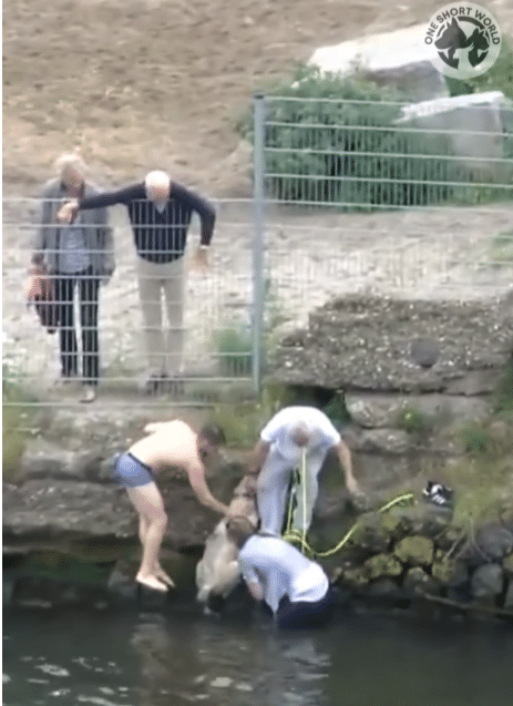 Fortunately, a group of rescuers nearby noticed the struggle.