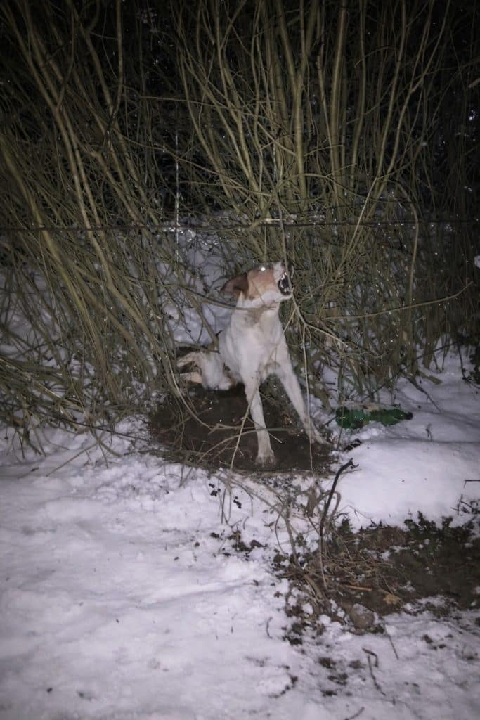 Snow covered the roadside in silence. A concerned caller reported a small injured dog lying near the bushes, barely moving. The rescue team from Dublin Shelter arrived quickly, flashlights cutting through the darkness.