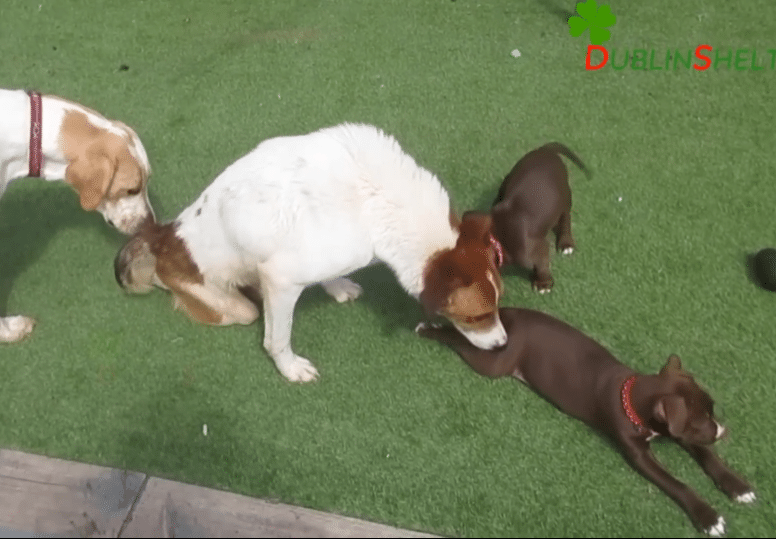 Alongside other dogs.