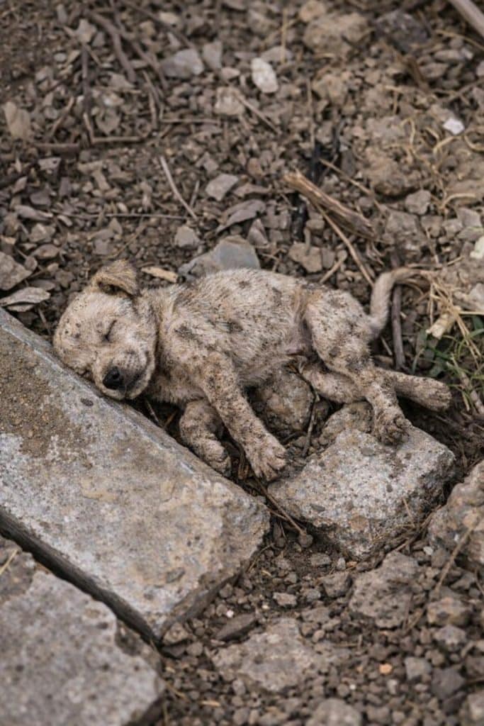 A tiny puppy lay there, exhausted and barely conscious. Her eyes were half closed. Her body trembled. She didn’t have the strength to stand — yet when offered a little water, she tried to sip.