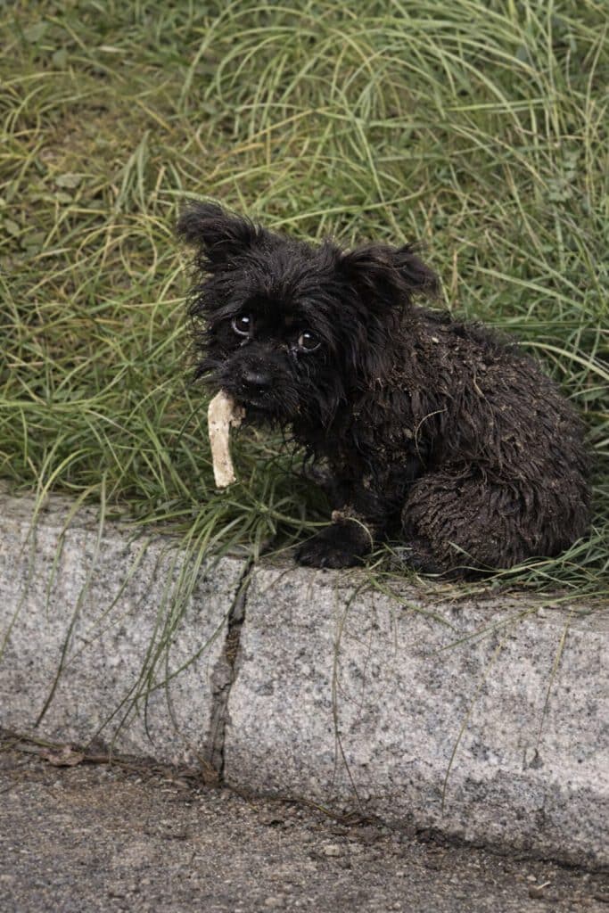 A small black puppy, thin and wary, surviving on scraps. The moment anyone stepped too close, she would dart away — quick, silent, determined to stay out of reach.