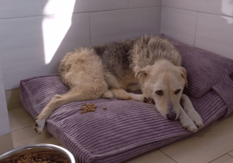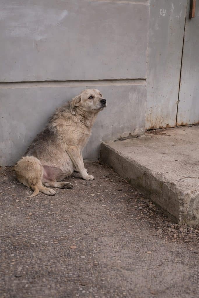 She moved slowly. Her breathing was labored. Each step looked heavy, as if her own body was weighing her down. The once-alert street dog now seemed exhausted, struggling to keep up with life around her.