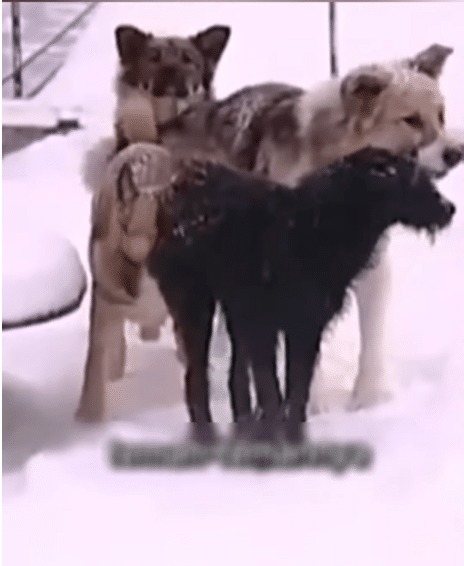 The black dog, once motionless on drifting ice, now ran freely across white fields. His body moved with energy. His tail wagged confidently. Other dogs approached, and he greeted them eagerly.