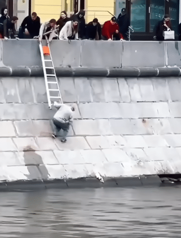 Video: Trapped on the Moscow River Wall — Watch the Moment He’s Lifted to Safety