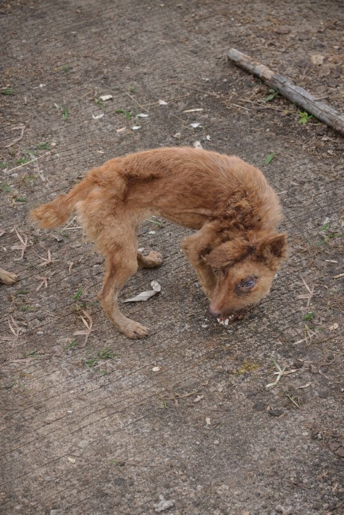 Curled against the wall, trembling and thin, was a small dog no one had ever truly claimed. The locals didn’t give him a name. They referred to him with cruel labels — a “deformed stray,” a mistake of nature.