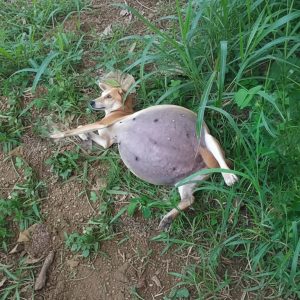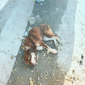 On a quiet stretch of road beneath the relentless Indian sun, a small street dog lay curled tightly into herself, barely moving. Dust clung to the air,…