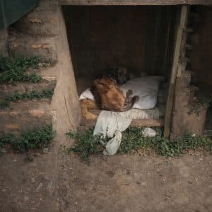 A Silent Corner in a Broken Shed In the first seconds of the video, we see a tiny dog curled into herself inside a filthy wooden shack….