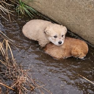 Trapped in a Narrow Drain, Two Tiny Puppies Found Warmth Before Nightfall