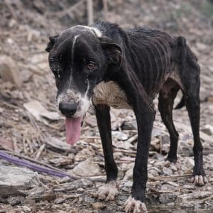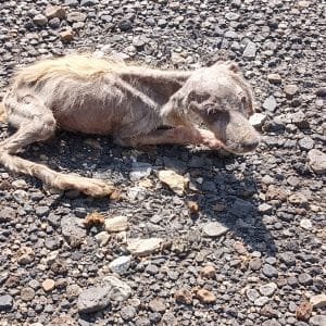 Abandoned on a Dirt Road The video begins on a quiet dirt road. There, lying weakly on the ground, is a black dog who looks utterly exhausted….