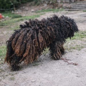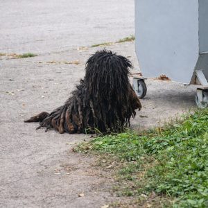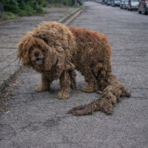 A Small Dog Left Behind The video begins with a fragile figure pacing behind a metal fence. Her fur is so badly matted that it hangs in…