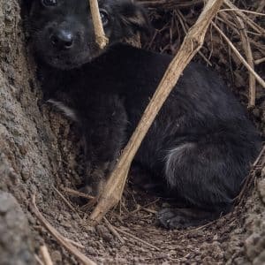 Some puppies run toward people. She did the opposite. When she was first seen, the tiny black pup was tucked beneath a pile of dry branches, her…