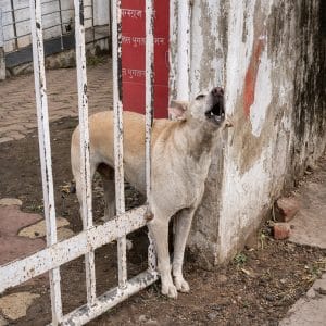 It started with a desperate sight. A golden-brown dog had wedged her head and neck between the narrow iron bars of a gate. The gap was far…