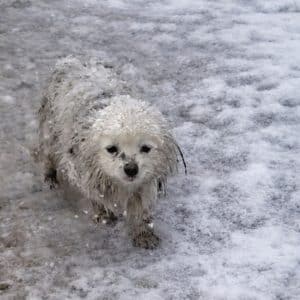 He Was Shivering Alone in the Snow — Until Someone Scooped Him Up