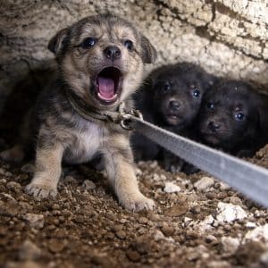 It was early morning when a man noticed them. Two tiny puppies lying beneath a tree at the edge of the road. Curled close together. Quiet. Still….