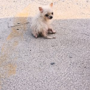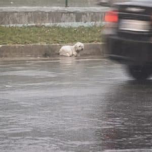 A Tiny Figure on a Busy Street At first, she looked like just another blur of white and brown fur moving too quickly along the roadside. Cars…
