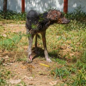 When Skully was first seen, time seemed to have almost run out. He lay near the roadside, his body painfully thin, every rib visible beneath damaged skin….
