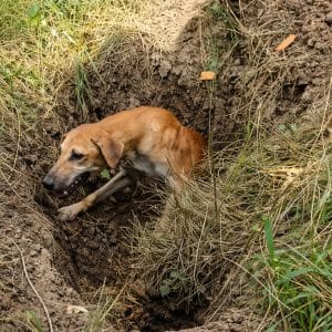 It happened without warning. In a quiet rural area where open land met dense, compact soil, a large dog suddenly disappeared. One moment he was standing above…