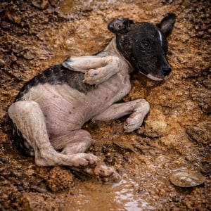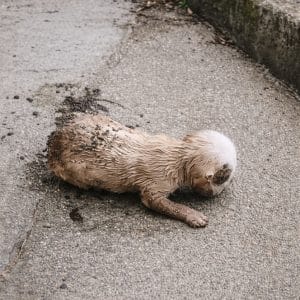 Found Lying in a Roadside Puddle, This Small Dog Was Given a Chance to Live