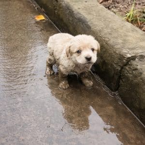 Left Crying on a Wet Sidewalk, This Tiny Puppy Found Safety in the Most Unexpected Way