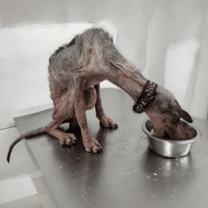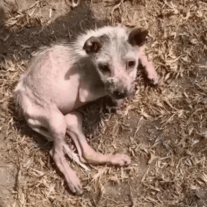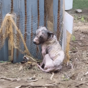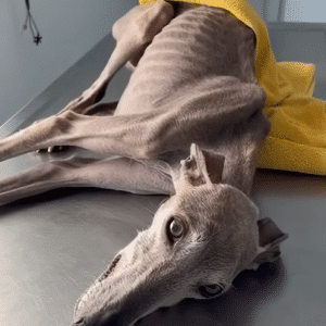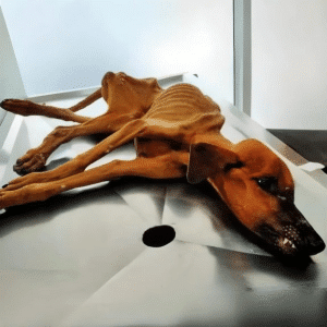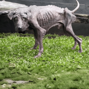 Hope was barely holding on when she was finally discovered. Her body told a story that didn’t need words—ribs sharply outlined beneath dull, matted fur, muscles weakened…