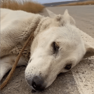 On a quiet stretch of road, far removed from warmth, noise, and human presence, a large white dog lay motionless against the cold ground. From a distance,…