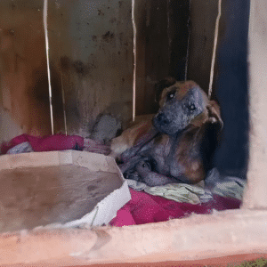 The moment felt suspended in time, quiet yet heavy with emotion. A mother dog lay pressed against her injured puppy, her body curved protectively around him as…