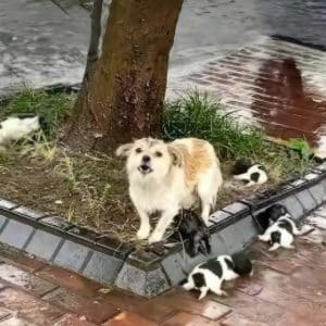 A Mother’s Plea in the Rain: How One Dog Fought to Save Her Little Family