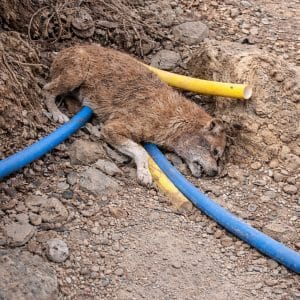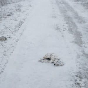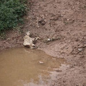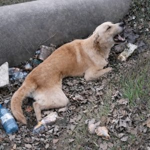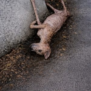A Shape in the Water At first, it looked like something the rain had washed aside. In a shallow roadside ditch, a dog lay almost completely still….