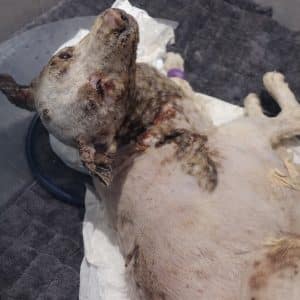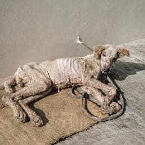 The video opens with a scene that is difficult to forget. A small dog lies on a treatment table, barely moving. His body is almost completely hairless….