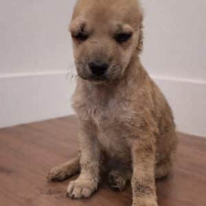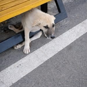 At first, you might not notice him. He was tucked quietly beneath a wooden bench, his small golden body barely visible in the shadows. Thin. Fragile. Still….
