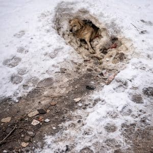 Left Freezing in the Snow, This Stray Dog Waited for Someone to Notice